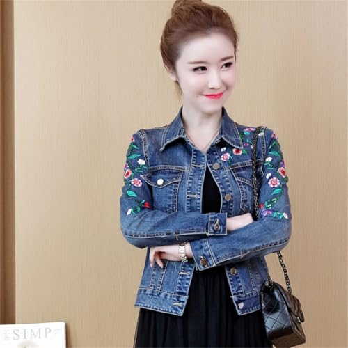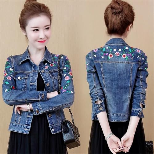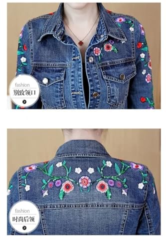 More information about Women's Embroidered Flower Denim Jacket Short Coat Vintage Slim Jeans Outwear Tops