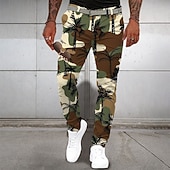 HOT ! Men's Dress Pants Buttons Pocket 3D Print Camo Full Length Business Casual Vacation Green Inelastic