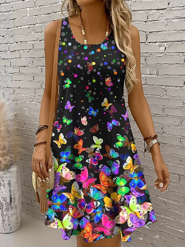 Women's Mini Dress Casual Dress Sundress A Line Dress Off The Shoulder Dress Vacation Casual Holiday Beach Regular Fit Ombre Graphic Butterfly Sleeveless Crew Neck Scoop Neck Colourful Yellow Red Blue 15