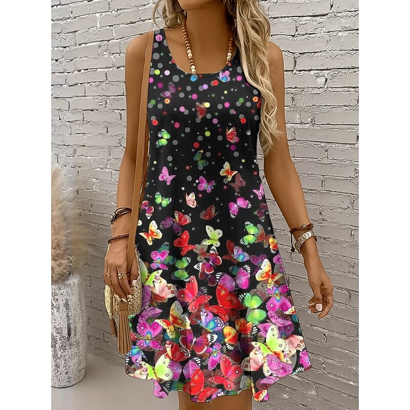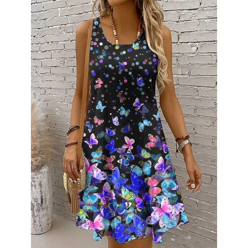 HOT ! Women's Mini Dress Casual Dress Sundress A Line Dress Off The Shoulder Dress Vacation Casual Holiday Beach Regular Fit Ombre Graphic Butterfly Sleeveless Crew Neck Scoop Neck Colourful Yellow Red Blue