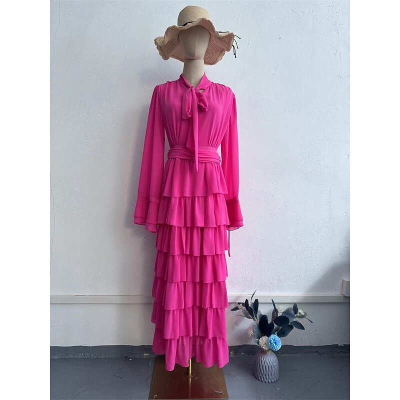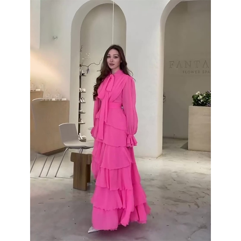More information about A-Line Quinceanera Dresses Elegant Dress Formal Wedding Floor Length Long Sleeve High Neck Chiffon with Ruffles