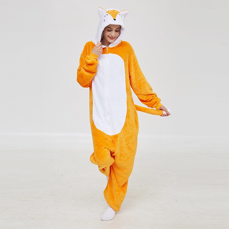 Highlights [Fabric] Crafted from soft and plush flannel fabric, this adults’ onesie costume ensures warmth and comfort, perfect for keeping cozy on chilly evenings or during playful indoor activities. Its stretchy nature guarantees flexibility and ease of movement. [Fit] Featuring a relaxed and comfortable fit, this unisex onesie is designed to allow freedom of movement without compromising on cozy coverage, making it an excellent choice for both lounging and cosplay events. [Design Highlights] With its vibrant orange color block pattern and adorable fox character details, this onesie includes a charming hood complete with cute fox ears. The secure front zip closure adds convenience while maintaining the whimsical style. [Occasions] Ideal for carnival celebrations, costume parties, or simply lounging at home, this funny onesie fits a variety of occasions where both comfort and creativity are desired. Whether for a casual evening or a themed event, it provides a playful and snug experience. [Sizes] Available in a range of sizes from S to XL, this onesie accommodates various body types, ensuring a suitable fit for adults who seek both comfort and fun in their pajamas.