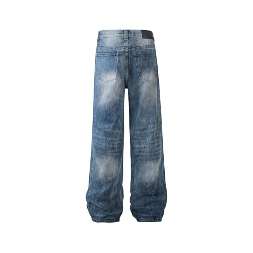HOT ! Jeans Pants Trousers Denim Retro Trendy Street Wash Grinding White Loose Wide Leg Casual Commuter Straight for Men