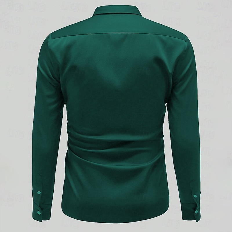 Highlights [Fabric & Fit] : Crafted from a blend of satin and cotton, this men's shirt provides a smooth and breathable experience, perfect for spring and fall seasons. The luxurious satin fabric offers a sleek sheen, while the fitted silhouette accentuates the wearer's natural contours, providing both comfort and a sophisticated look. [Design Highlights] : This shirt features a classic button-up front and a structured lapel collar, adding a touch of elegance and timeless style. Available in versatile colors like green, white, black, navy blue, and wine, the shirt's plain pattern makes it adaptable for various fashion styles. [Occasions] : Ideal for vacations, daily wear, or going out, this shirt effortlessly transitions between casual and semi-formal settings. Whether paired with tailored trousers for a polished appearance or with jeans for a more laid-back vibe, it complements a modern gentleman’s wardrobe. [Size Range] : Available in a wide range of sizes including S, M, L, XL, 2XL, and 3XL, this shirt is designed to cater to different body types, providing a flattering fit for all.