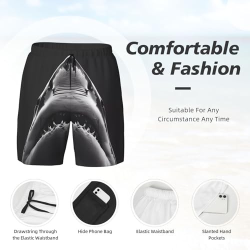 Black and White Shark Funny Men's Swim Trunks Board Shorts Quick Dry- 6