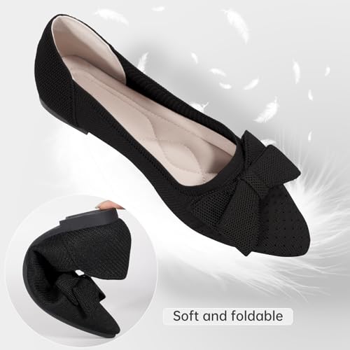 Women's Flats Shoes Pointed Toe Flats for Women Cute Bowknot Knit Breathable Comfortable Dressy Casual Slip On Ballet Flats for Walking Work Business 5