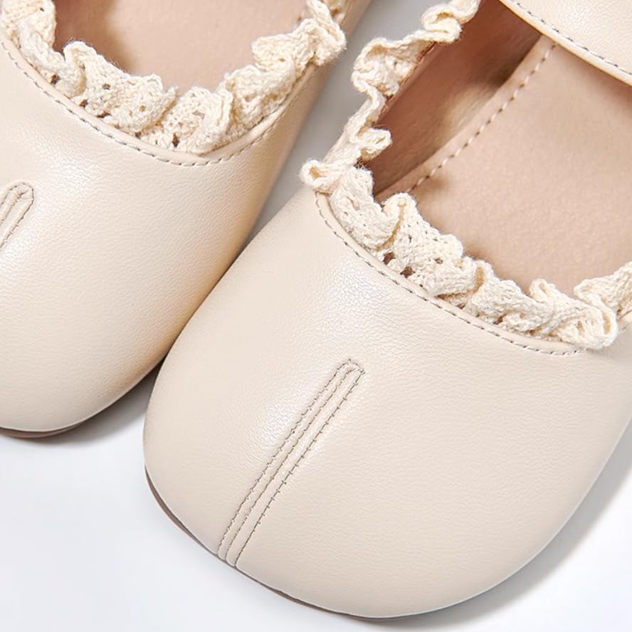• CLASSIC DESIGN: Elegant mary jane style flats featuring delicate lace trim detail around the edges and an adjustable buckle strap closure