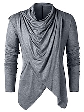 More information about men's retro knight solid heap collar long sleeve t-shirt casual loose asymmetrical punk pullover blouse tops army green