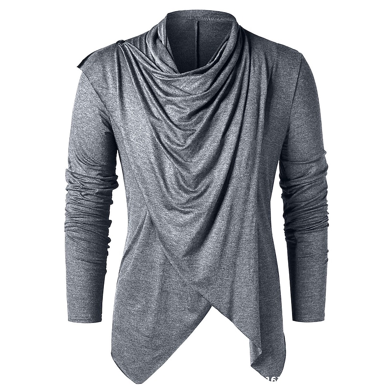 HOT ! men's retro knight solid heap collar long sleeve t-shirt casual loose asymmetrical punk pullover blouse tops army green
