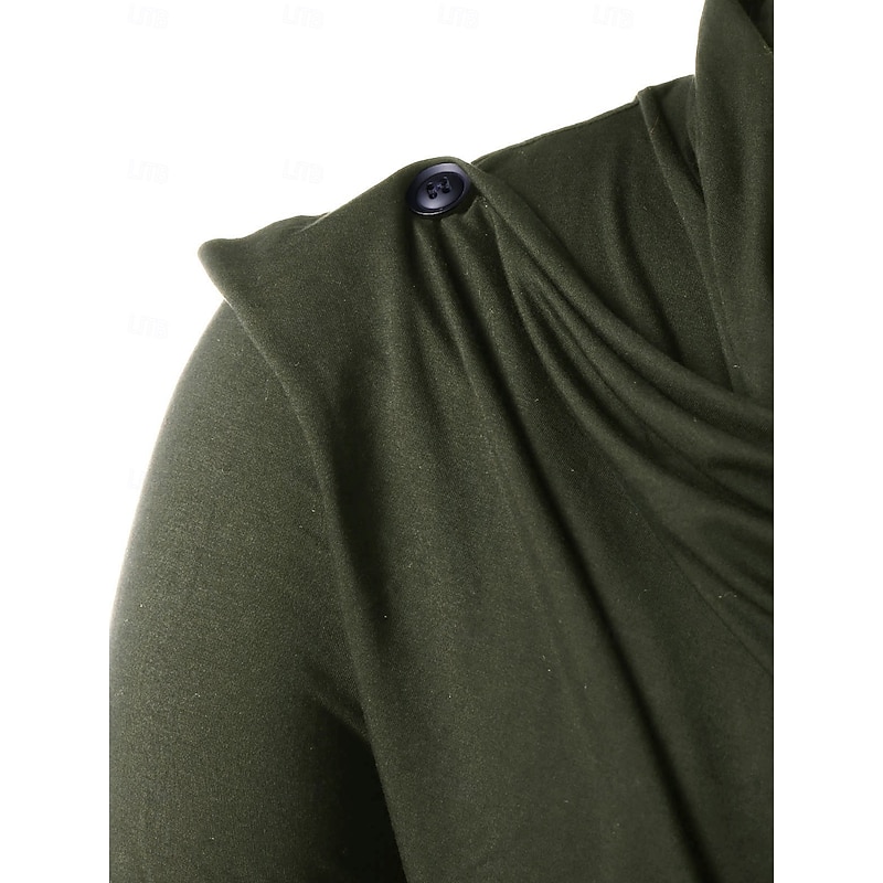 men's retro knight solid heap collar long sleeve t-shirt casual loose asymmetrical punk pullover blouse tops army green 5