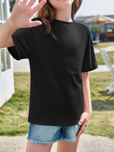 Haloumoning Girls Short Sleeve T Shirts Kids Summer Oversized Tops Casual Crewneck Basic Tees 5-14Y 4