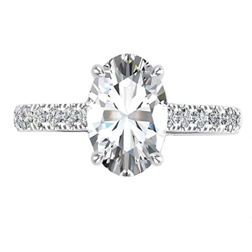 HOT ! 3.46 Carat Moissanite Rings, Oval Crused Ice Cut DF Color VVS Clarity Moissanite Wedding Rings, Sterling Silver with 18K White Gold Plated Solitaire Engagement Ring