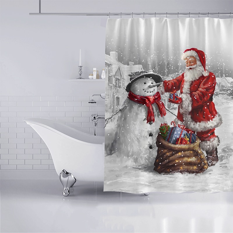 Christmas Shower Curtain Waterproof Fabric Bathroom Decoration and Modern and Classic Theme and Christmas 12