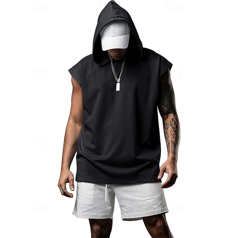 Men's Tank Top Vest Top Undershirt Sleeveless Shirt Sleeveless Hooded Spring & Summer Plain Fashion Designer Basic Vacation Street Going out Black White Red Top Tee for Men 2
