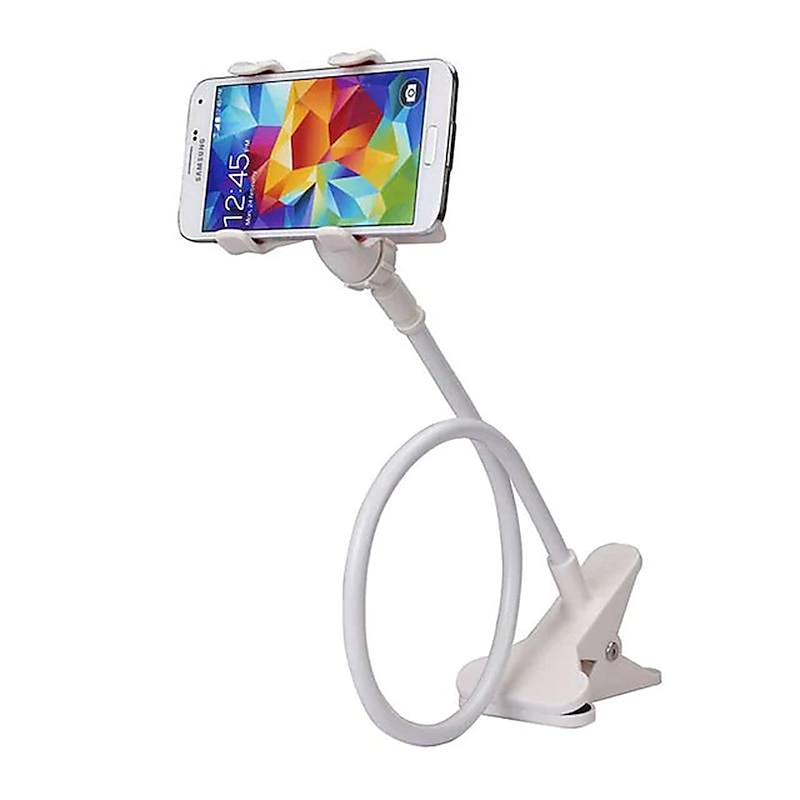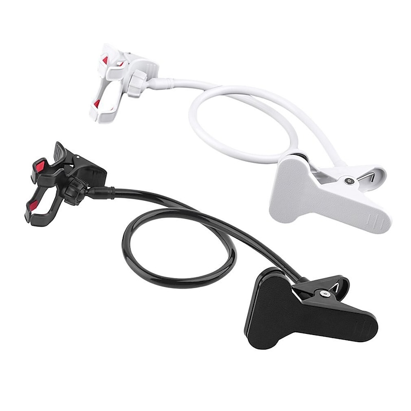 Highlights - Designed for ultimate comfort: This lazy phone holder is specially designed for those who love to use their smartphones while lying down on bed or sofa. - Compatible with multiple models: This flexible clip phone holder is compatible with a wide range of cell phone models including iPhone, Google Pixel, Nexus, Huawei, Samsung Galaxy and other 4-6.5 inch Cell Phones, Nintendo Switch. - 360-degree rotation: With its 360-degree rotation clip-on holder and flexible long gooseneck arm, you have the freedom to adjust it to your preferred viewing angle. - Stable and sturdy: The distinctive dual-arm design of this phone holder ensures stability and enables easy twisting. Its durable flexibility allows for repeated bending without breaking. - Conveniently mounted anywhere: This cell phone clip holder can be securely mounted on bed frames, nightstands, desks, or any other surface, allowing you maximum comfort and convenience.
