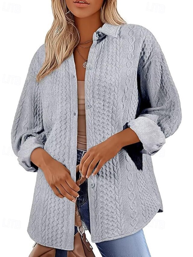 More information about Women's Shirt Jacket Textured Jackets Comfortable Buttons Casual Plain Holiday Going out Single Breasted Regular Turndown Regular Fit Long Sleeve Outerwear Black White Pink Fall