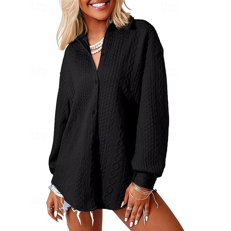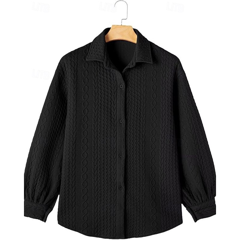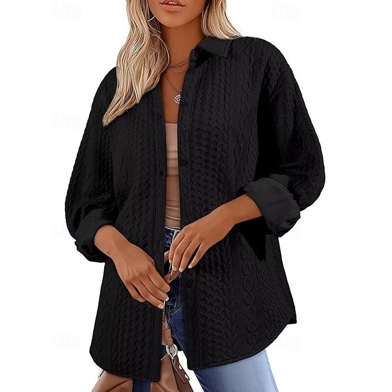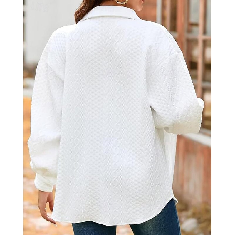 Women's Shirt Jacket Textured Jackets Comfortable Buttons Casual Plain Holiday Going out Single Breasted Regular Turndown Regular Fit Long Sleeve Outerwear Black White Pink Fall 1