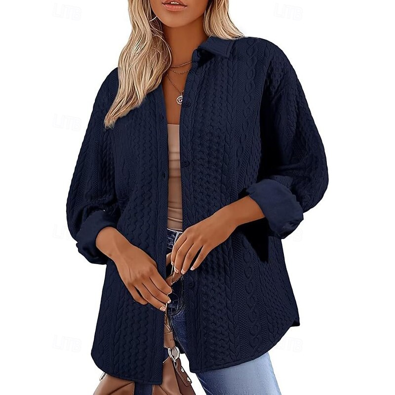 Women's Shirt Jacket Textured Jackets Comfortable Buttons Casual Plain Holiday Going out Single Breasted Regular Turndown Regular Fit Long Sleeve Outerwear Black White Pink Fall 9