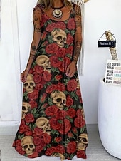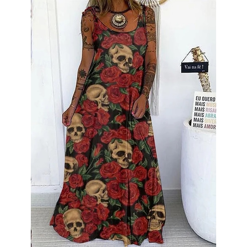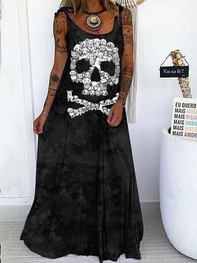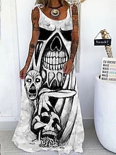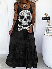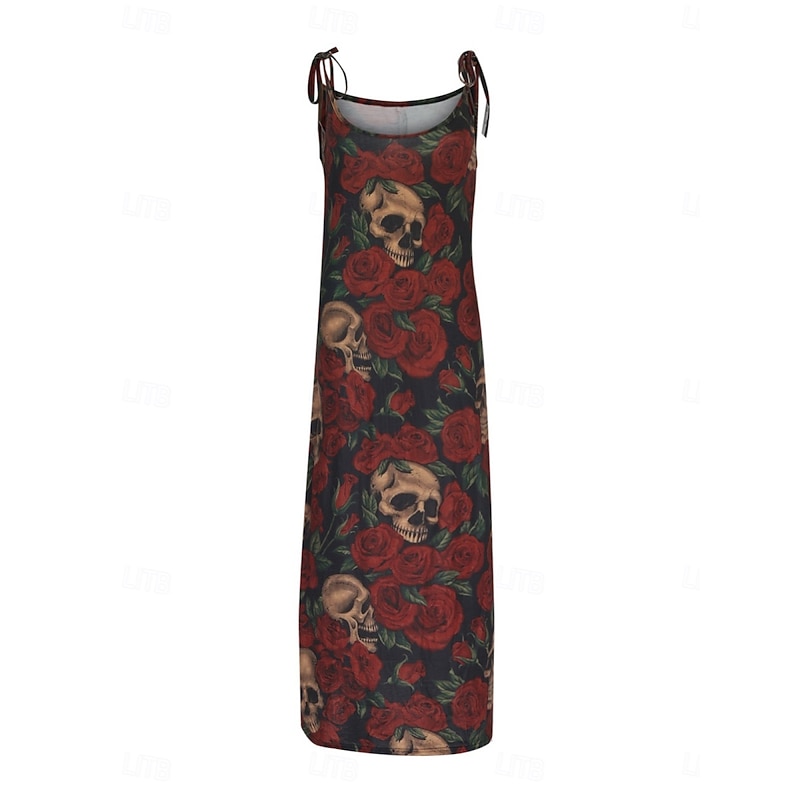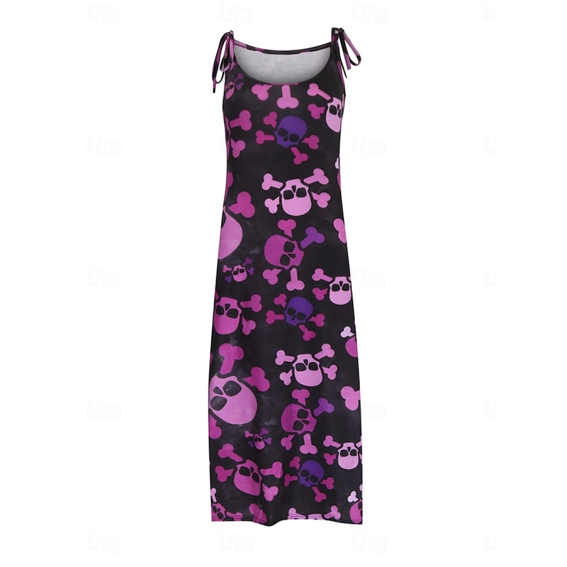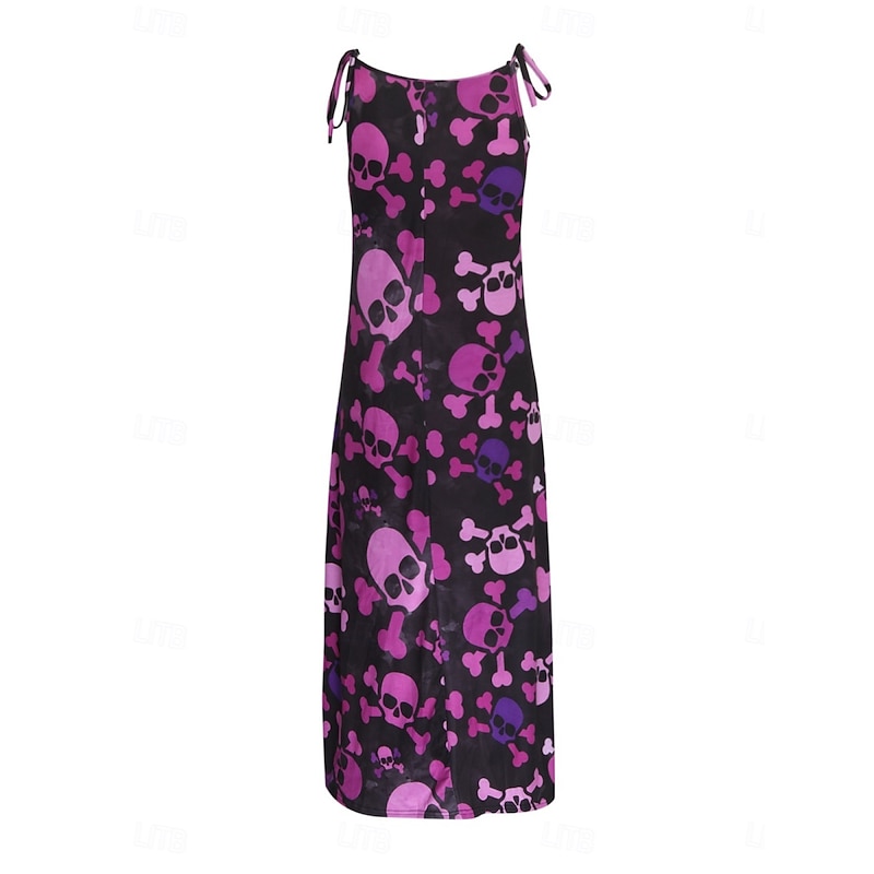 More information about Halloween Women's Skulls Print Maxi Dress Summer Dress Slip Dress Casual Daily Regular Fit Skull Sleeveless U Neck Black White Red Purple Summer