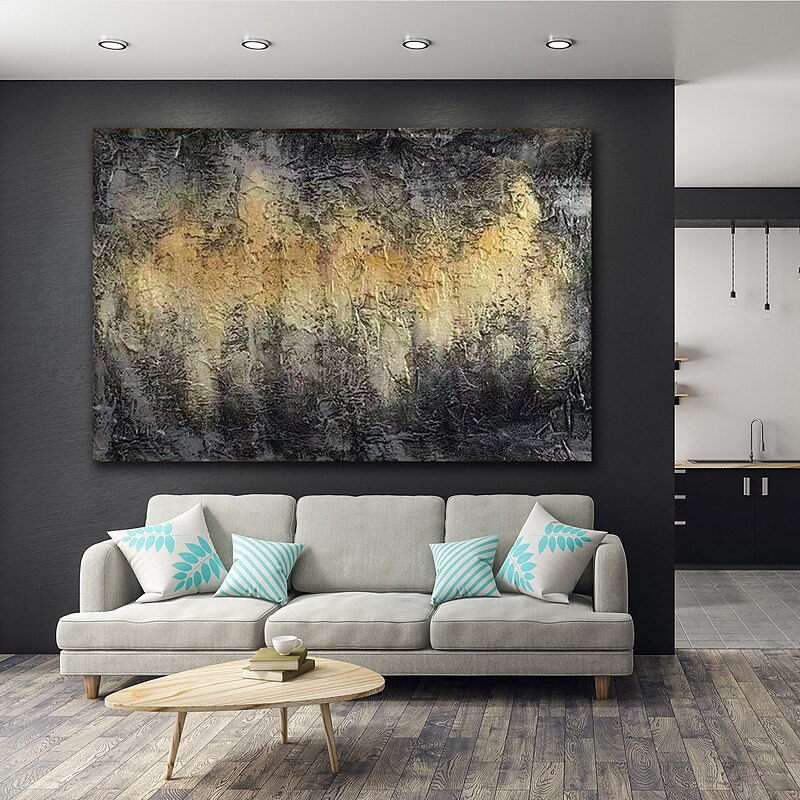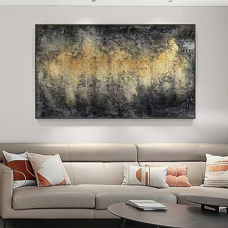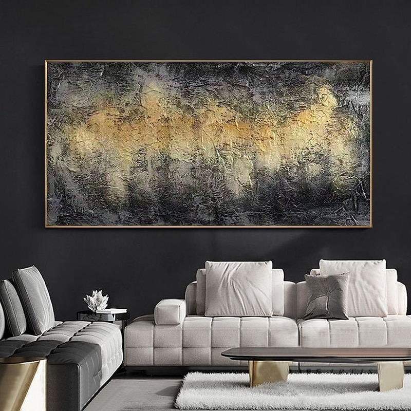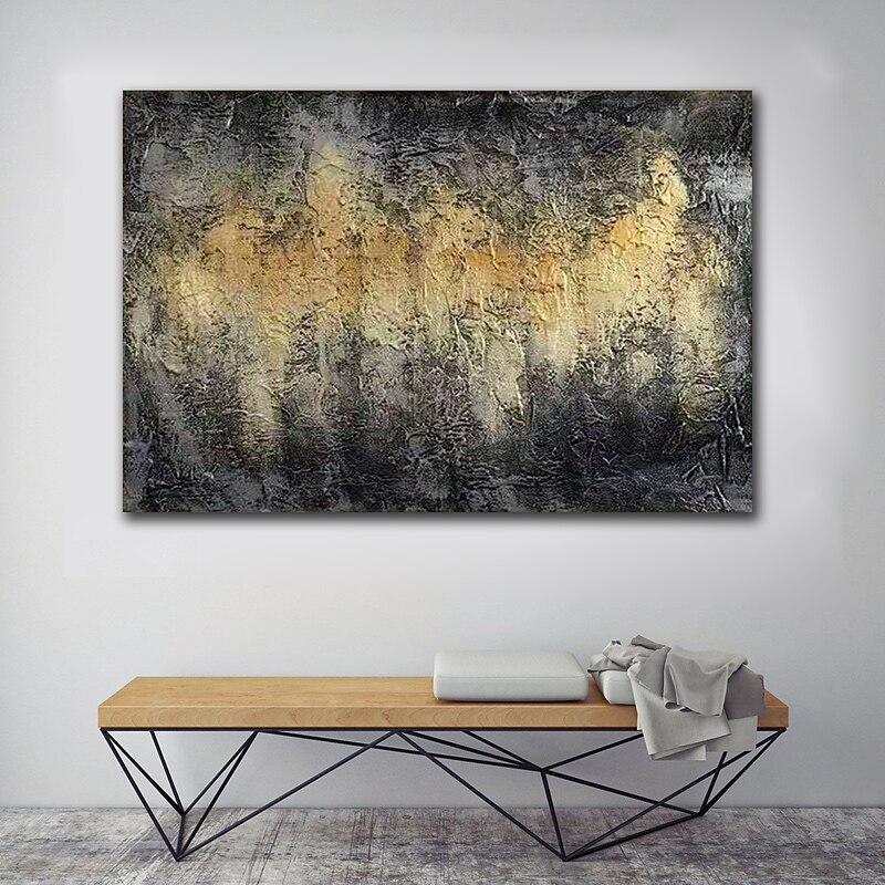 HOT ! Abstract Oil Painting Canvas Wall Art Black Yellow Abstract Decoration for Home Decor Rolled Frameless Unstretched