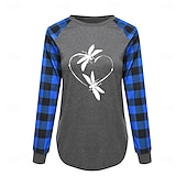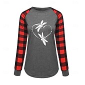 More information about Women's Valentine Heart T Shirt Fashion Plaid Regular Tops Long Sleeve Round Neck Print Regular Fit Valentine's Day Weekend Red Blue Spring & Fall
