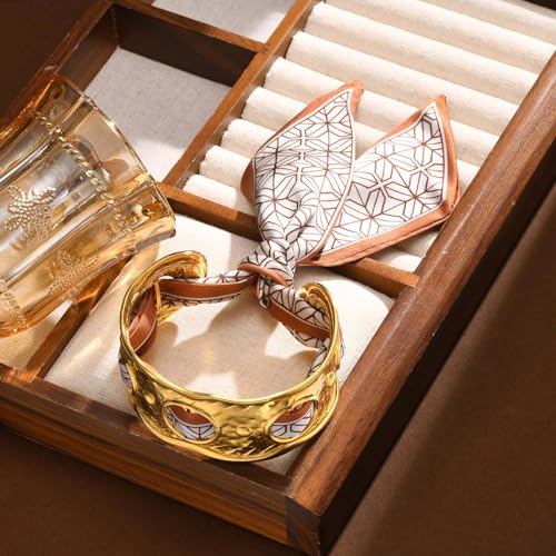 • Stylish Accessory: This 2-in-1 bracelet set includes a stunning 18K gold-plated stainless steel cuff bracelet and a vibrant beautifully patterned silk scarf.