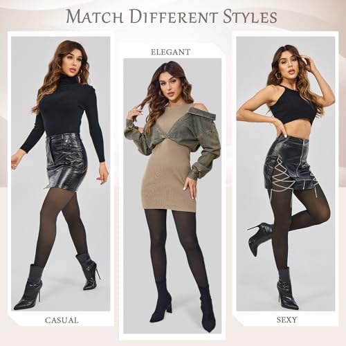 • 【FAKE TRANSLUCENT DESIGN】: Fake translucent tights look like a sheer stocking from the outside, but the inside is filled with warm fleece. Not only keeps you warm in the cold season, but also shows off your figure. In addition to classic and versatile colors such as black and brown, we have also added a variety of fishnet pantyhose and dot tights styles. Various styles women tight can easily follow your all daily collocation