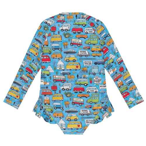 Car Toy Cute Girls Long Sleeve Rashguard Swimsuit UV Protection One-Piece Swimwear Bathing Suit B0402711 4