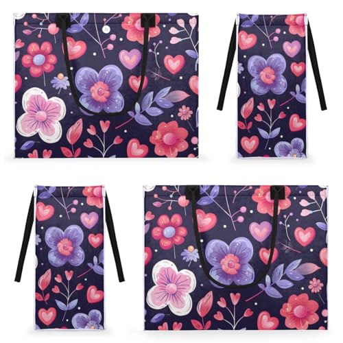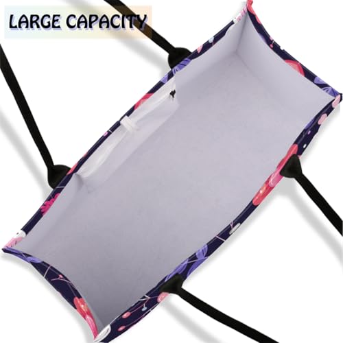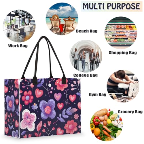 HOT ! Purple Love Flowers Tote Bag for Women Large Beach Bag Reusable Tote Bags for Work Travel Beach Shopping
