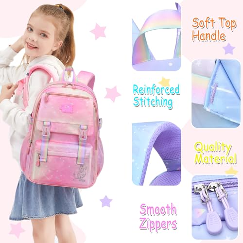 Girls Backpack, Kid Starry Rainbow School Bag, Kawaii Backpack with Lunchbag & Pencilbox, Mochilas Escolares Para Niñas 5