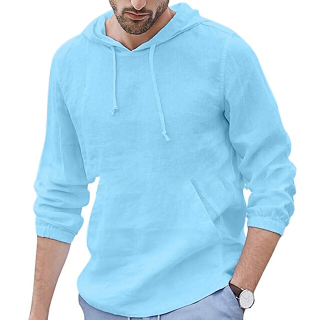 More information about Men's Linen Shirt Cotton Linen Shirt Summer Shirt Beach Shirt Plain Hawaiian Holiday Black White Blue Long Sleeve Hooded Spring & Summer Clothing Apparel Basic