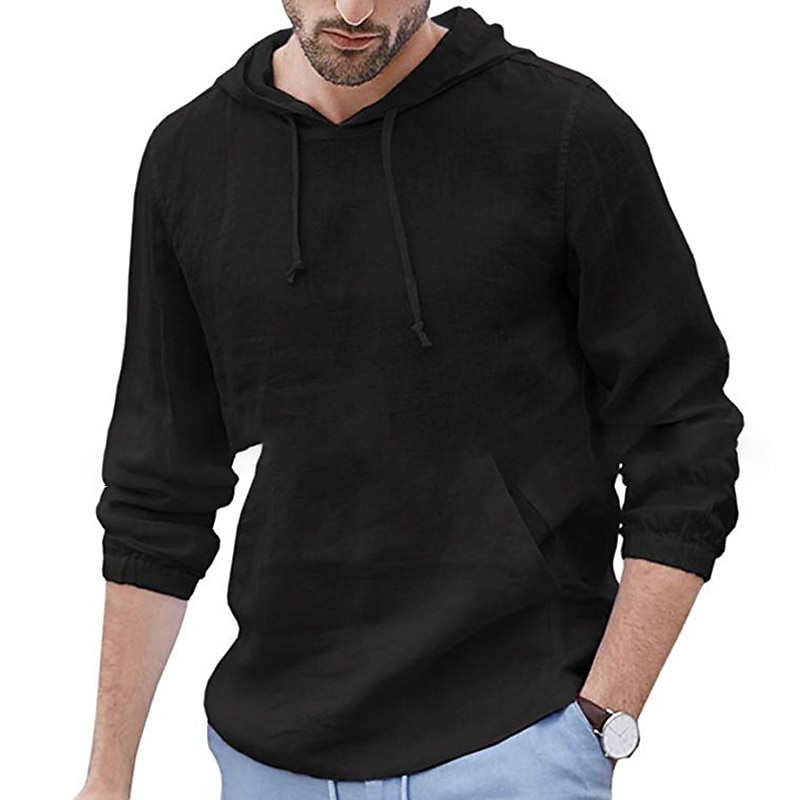 HOT ! Men's Linen Shirt Cotton Linen Shirt Summer Shirt Beach Shirt Plain Hawaiian Holiday Black White Blue Long Sleeve Hooded Spring & Summer Clothing Apparel Basic