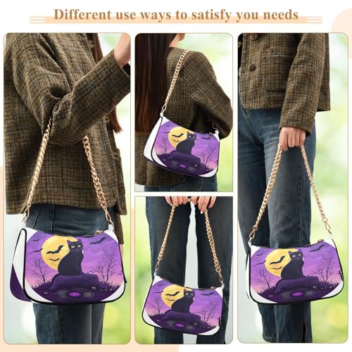 HOT ! Halloween Cat Shoulder Bag for Women, Handbag with Chain Strap, Soft Purse Tote Bag for Ladies