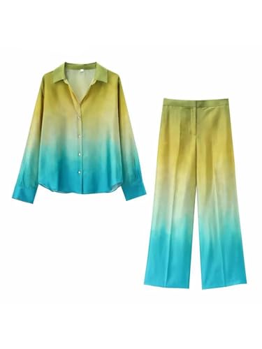 HOT ! Women 2 Pieces Tie Dye Print Shirt Top Straight Leg Pants Sets for Outfit Two Piece Set