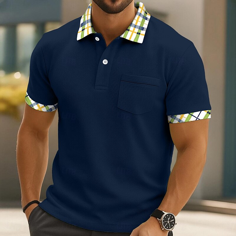 More information about Men's Golf Shirt Pique Polo Shirt Business Casual Classic Short Sleeve Fashion Basic Solid Color Plaid Buttons Summer Spring Spring & Fall Regular Fit White Yellow Navy Blue Green Golf Shirt