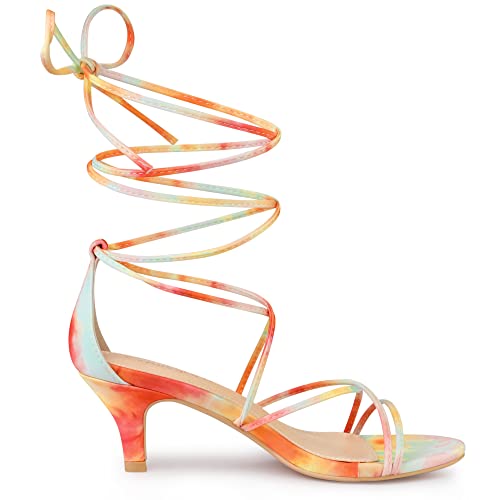 Allegra K Women's Strappy Tie Dye Heels Lace Up Kitten Heel Sandals 4