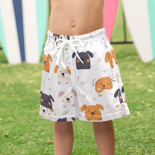 Pigsaly Boys' Swim Board Shorts Funny Puppy White Black Dog Boy's Swim Trunks Kids Swimwear XS 4
