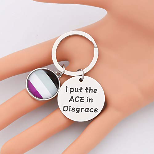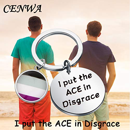 CENWA Asexual Pride Gift LGBTQ Gift Asexual Pride Flag Jewelry I Put The ACE in Disgrace Keychain 6