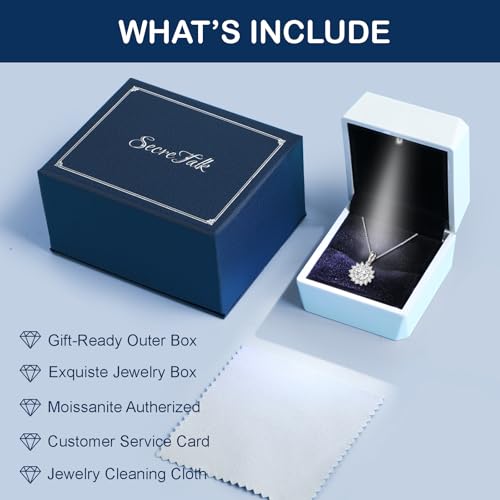 SecreTalk 1-4CT Moissanite Pendant Necklace for Women, Sunflower S925 Sterling Silver Necklace Gift for Wife Mother Her 1