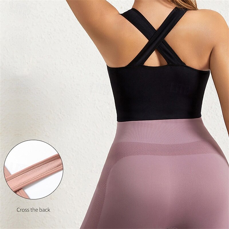 Women's Yoga Bra Pilates Bra Sports Bra Bra Top Push Up Seamless Anti-vibration Zipper Wireless Solid / Plain Color Sport Activewear Deep Purple Black Gym Zumba Running 12