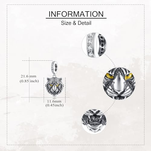 • 925 Silver Tiger Charm:Tiger charm bead is made of excellent 925 silver, no nickel, no lead , hypoallergenic, pleasant to wear, is a good choice for allergic people
