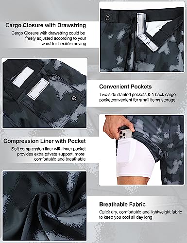 Nonwe Men's Swim Trunks with Compression Liner 2 in 1 Fast Dry Bathing Suits Cargo Surf Board Shorts with Pockets 6