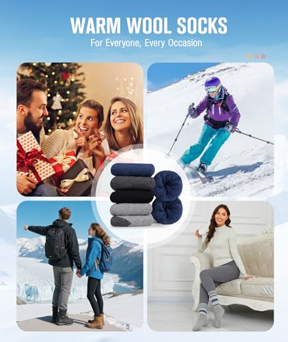 • COZY WARMTH & COMFORT:Say goodbye to cold toes! Our merino wool socks for women, crafted from a premium wool-cotton blend, are thick, ultra-soft, and built to lock in warmth. Whether you’re heading outdoors or curling up with a good book at home, they keep your feet cozy, comfortable, and toasty all day long—without feeling bulky or stiff.
