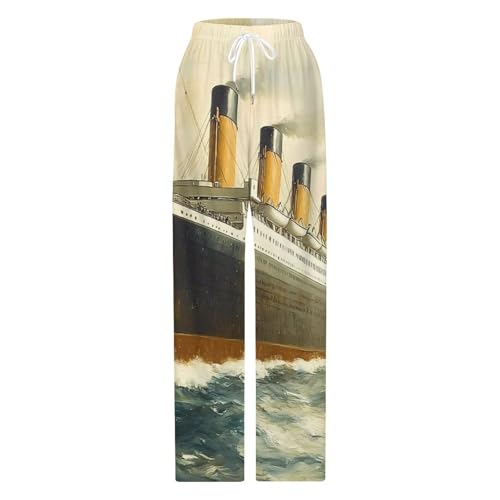 HOT ! Vintage Titanic Ship Ocean Boat Mens Pajama Pants Soft Lounge Pj Bottoms Lightweight Sleepwear Pants with Drawstring