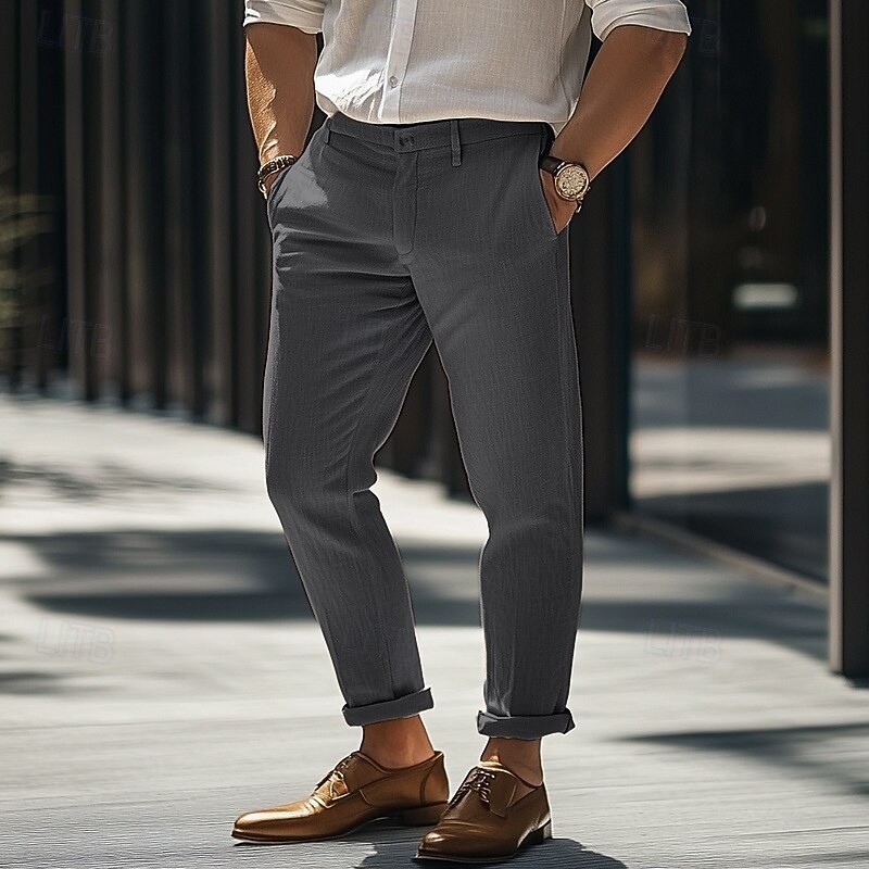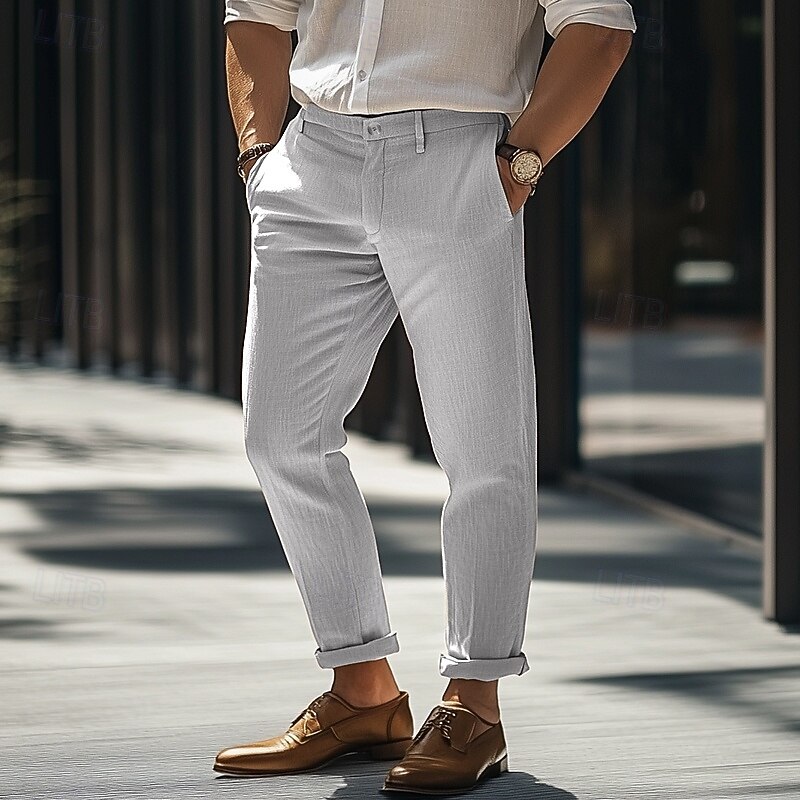 $27.99 - Men's Linen Pants Trousers Dress Pants Summer Pants Pocket Straight Leg Plain Comfort Breathable Full Length Formal Business Daily Streetwear Stylish Black Navy Blue 2025. Shop for cheap Business online? Buy at lightinthebox.com on sale today!