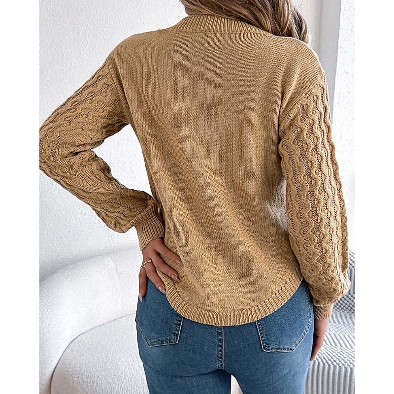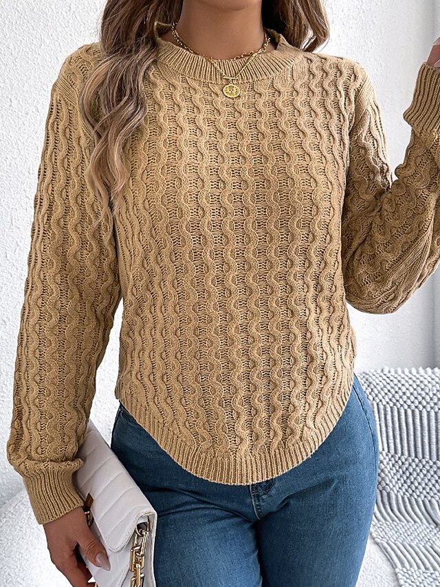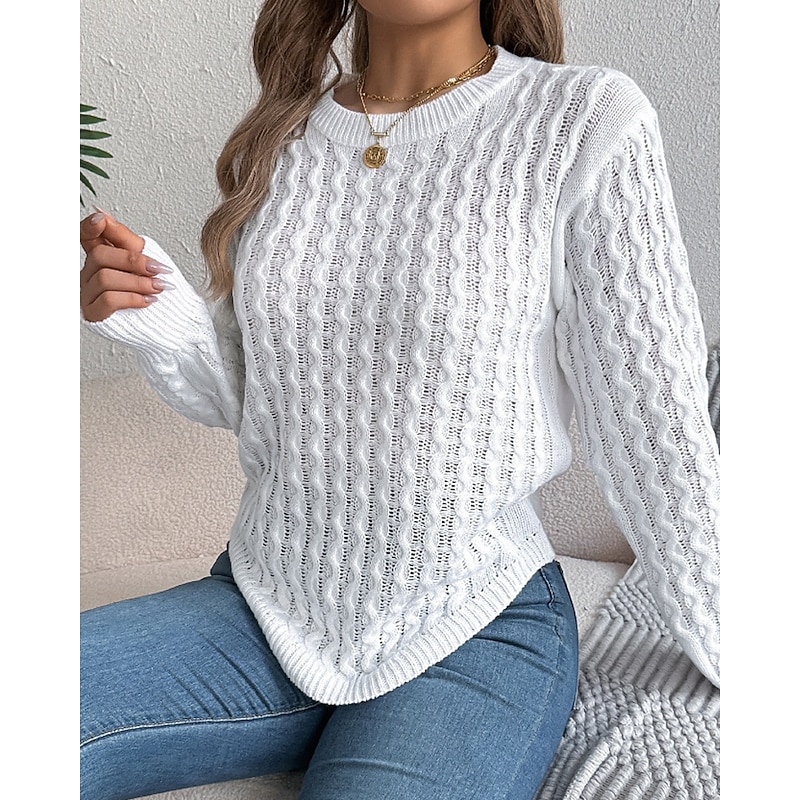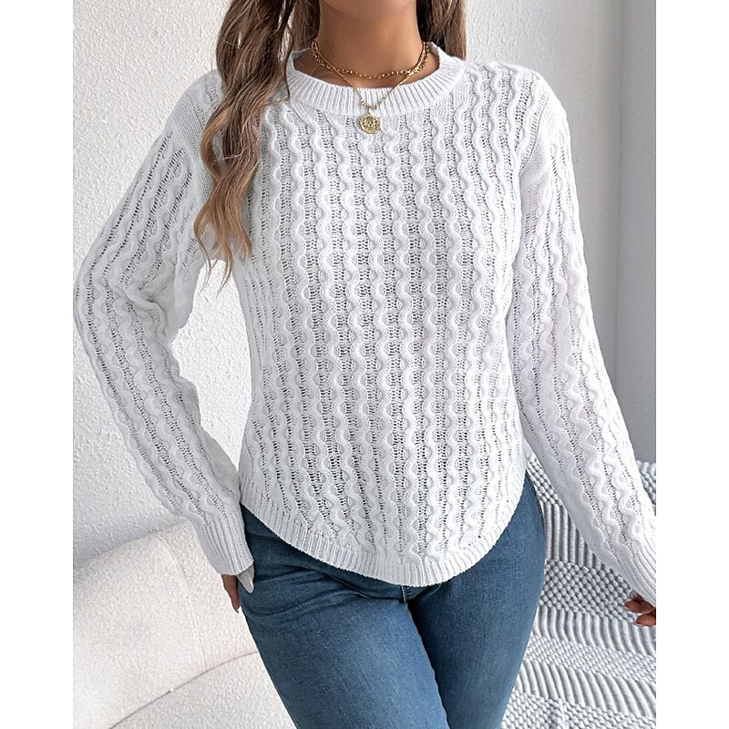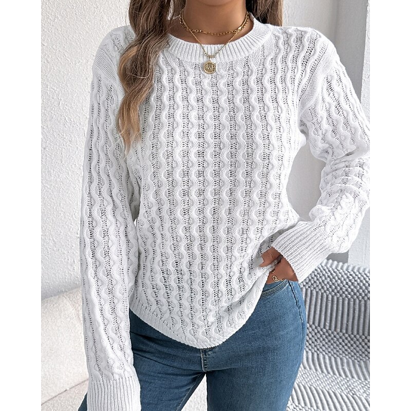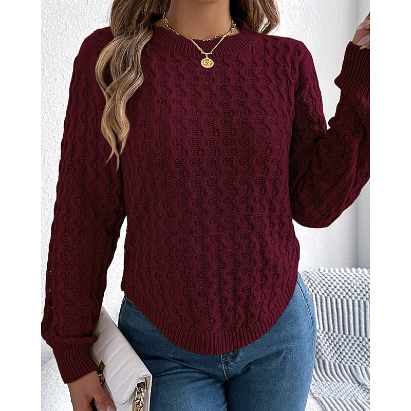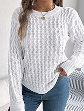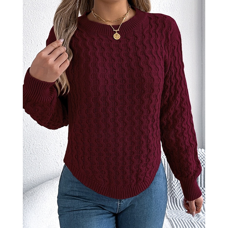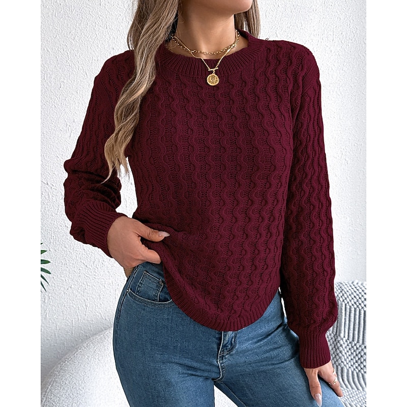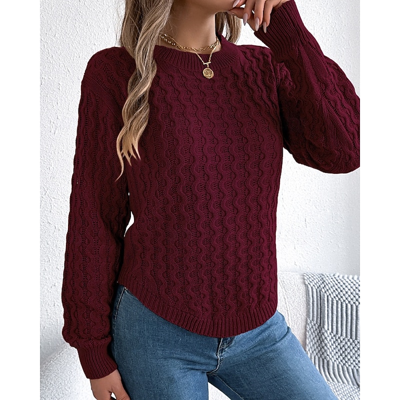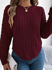 More information about Women's Sweater Pullover Streetwear Casual Solid Color Cable Crew Neck Knitted Long Sleeve Regular Tops Knit Daily Holiday Going out Wine Red White Fall Winter