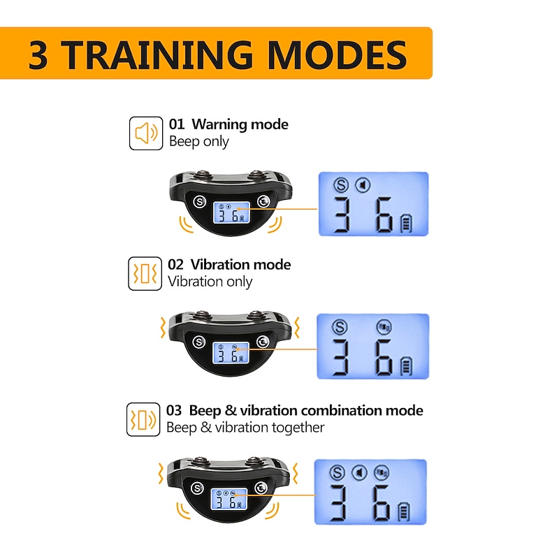 More information about No shock Auto anti-bark collar for dogs and cats IP65 waterproof LCD screen to check power level two anti-barking modes