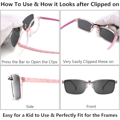 CAXMAN Kids Junior Clip On Sunglasses Polarized for Prescription Glasses Non Flip Up 4