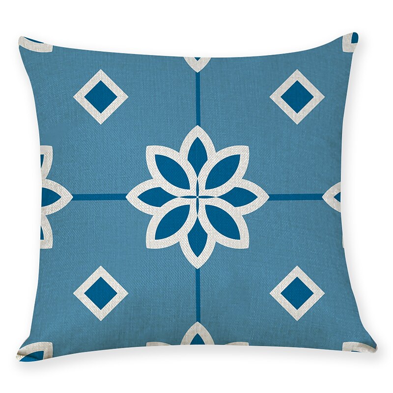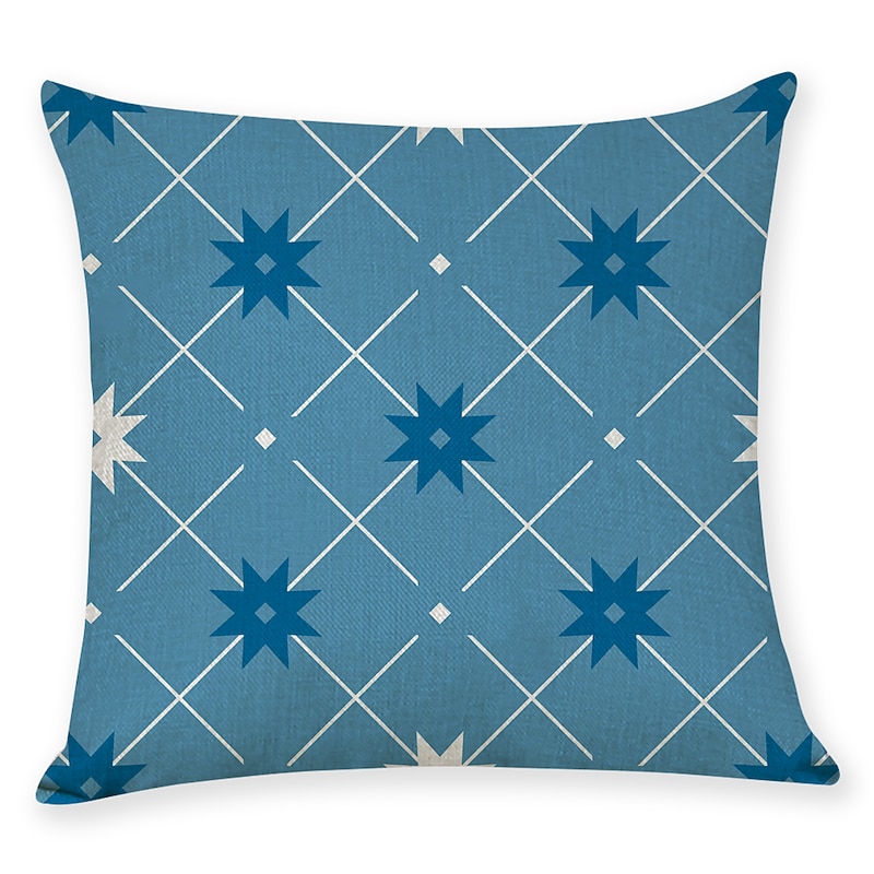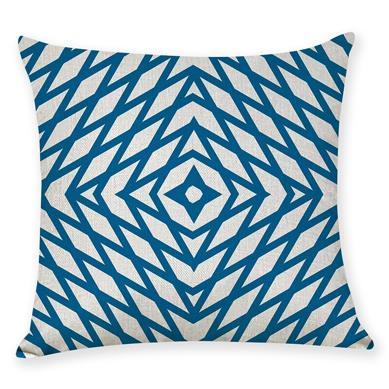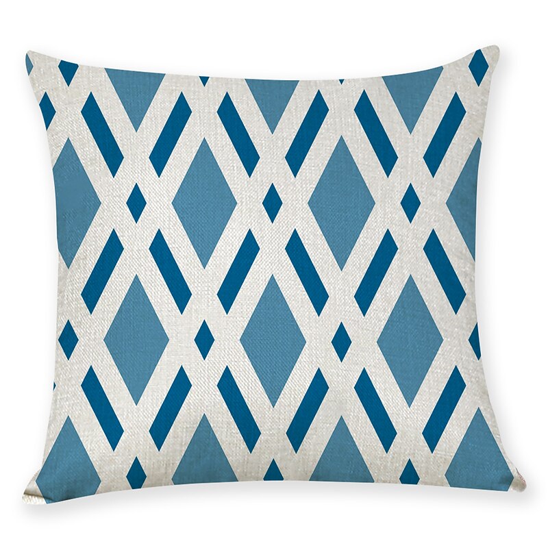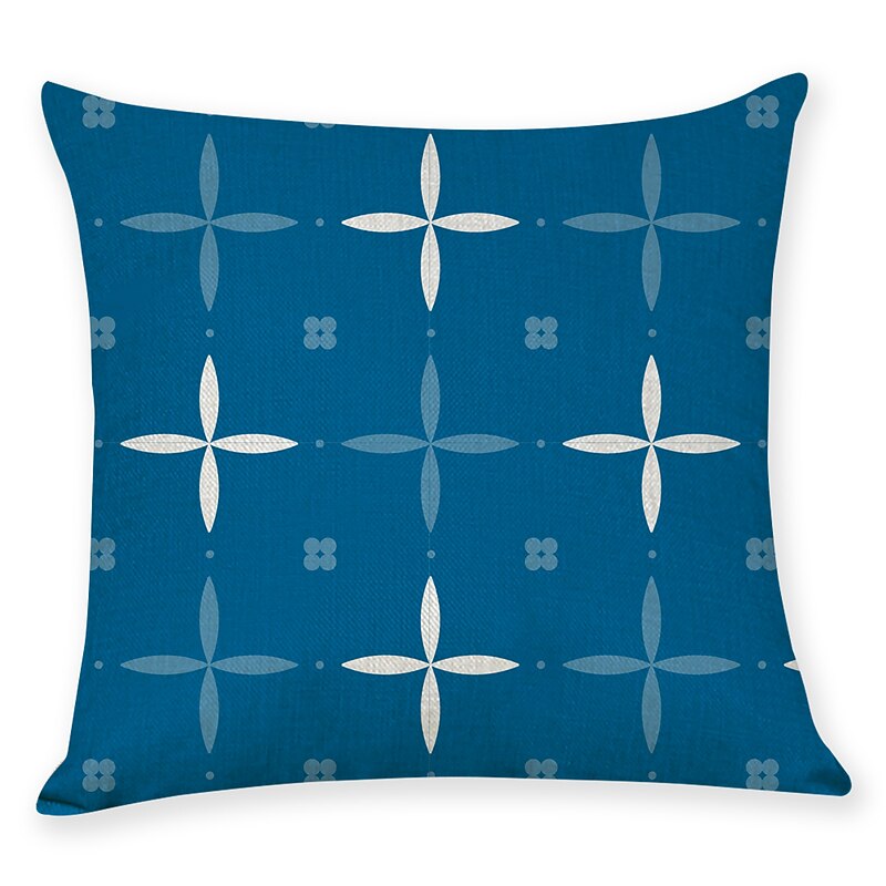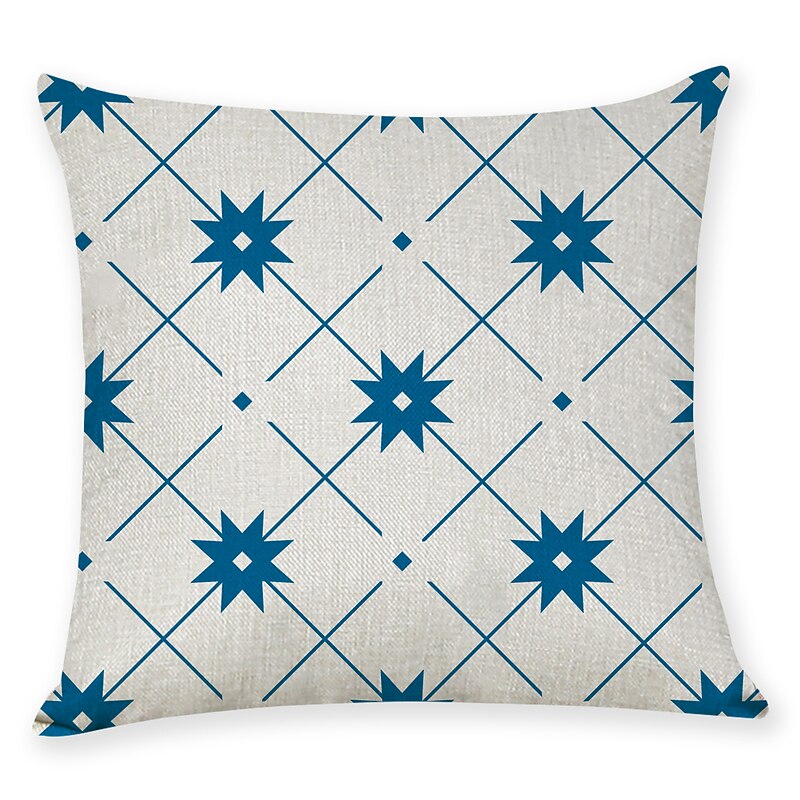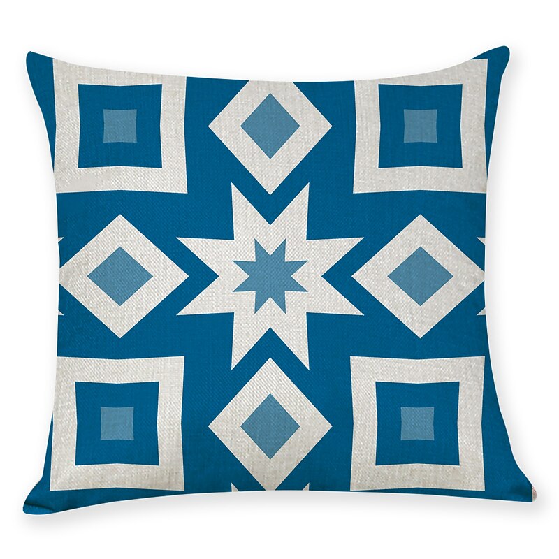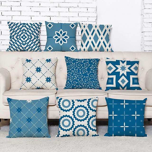Blue Set of 9 Pillow Cover, Geometric Pattern Geometic Leisure Modern Faux Linen Throw Pillow Outdoor Cushion for Sofa Couch Bed Chair Blue