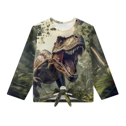 Cute Shirts for Girls 5-12 Long Sleeve Tops Crew Neck Tie Front Shirts Fall Clothes 5